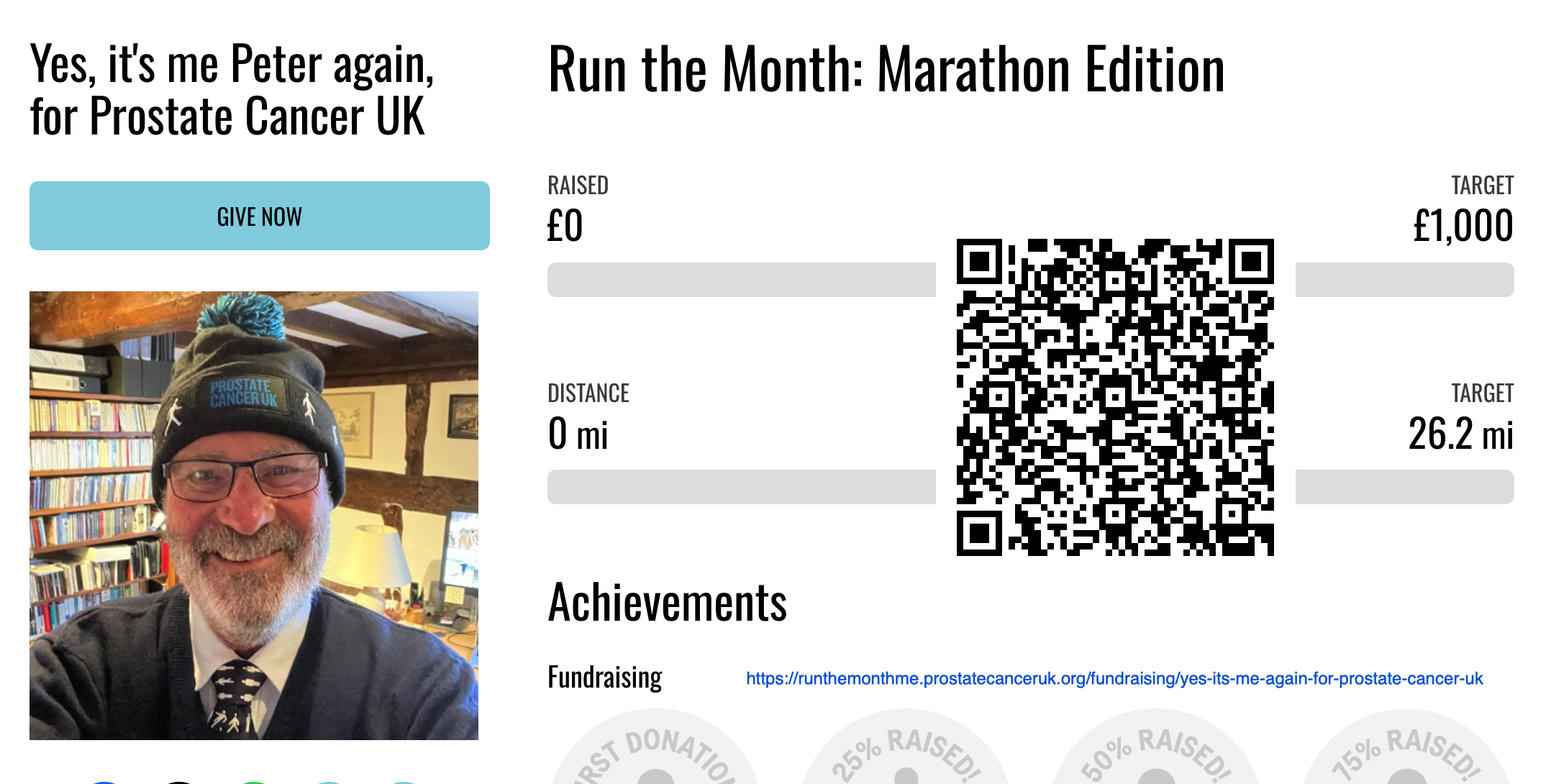 You can follow his efforts over January on his web page on Prostate Cancer UK this link at Peter's Marathon Page