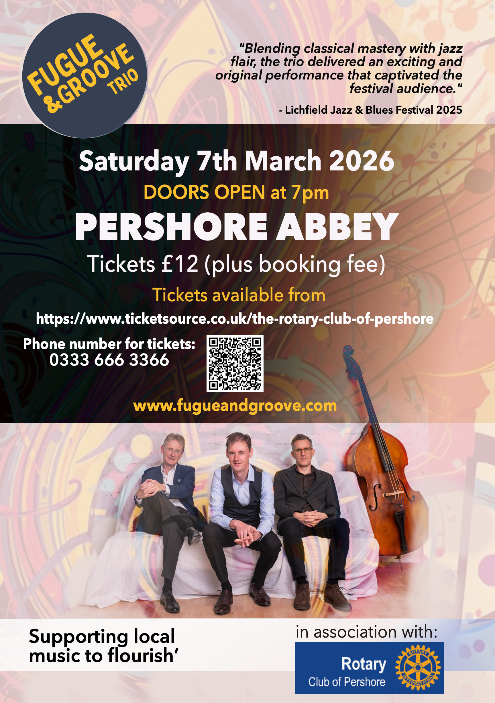 Let's fill Pershore Abbey and hear the fantastic music from The Rich Hughes Trio and support local music in and around Pershore.