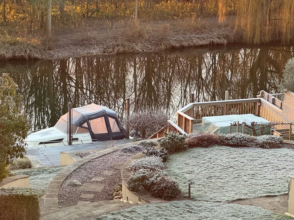 "At the start of the month, it was just plain freezing. Walking first thing in the morning if I could, because every day the weather threatened rain later in the day. I was very, very, lucky with the weather here in the Vale of Evesham. There was only one day in the whole of January that I had to go out on and get soaked in order to keep my promise of walking every day come rain, sleet or snow. Two other days I got wet, but mostly I managed to find a 45 to 90 minute window some time during the day to walk, and very often, as you can see in the pictures above and below, there was frost under foot but blue sky and sunshine which warmed my spirits - if not my hands and feet!"