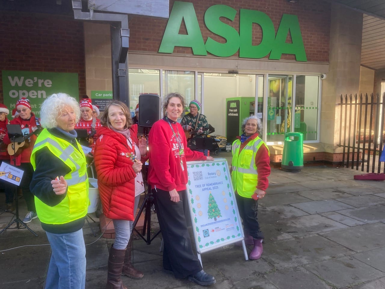 Once again, our Christmas spirits were raised by choirs and bands performing outside Asda, bringing their own characteristic styles of festive cheer. We are enormously grateful to Sing for Health, the Feel-Good Chorus, Vocal High, Pershore Brass, Pershore Abbey Choir, Evesham Concert Band, #LovePershore, Pershore Community Choir, Dampier’s Round, Drakes Broughton Folk Band and the u3a Ukulele Band for giving us and shoppers alike so much enjoyment. Thank you one and all for making our Asda collection days so memorable.